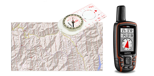 単独登山の強い味方 GARMIN GPSMAPシリーズ。日本語版はメジャーな国内の山なら水場や山小屋・登山道の歩行時間まで表示されていて見やすい。視界が悪く、道も明らかではない雪山の中では高精度で現在地がわかると復帰が容易。