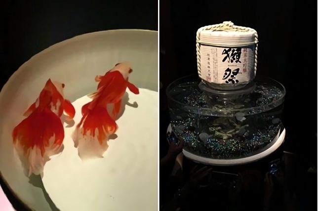 金魚鉢と合体した純米大吟醸「獺祭」と玉手箱風金魚鉢・・・!ラストの締めに相応しいGoodな感じ!